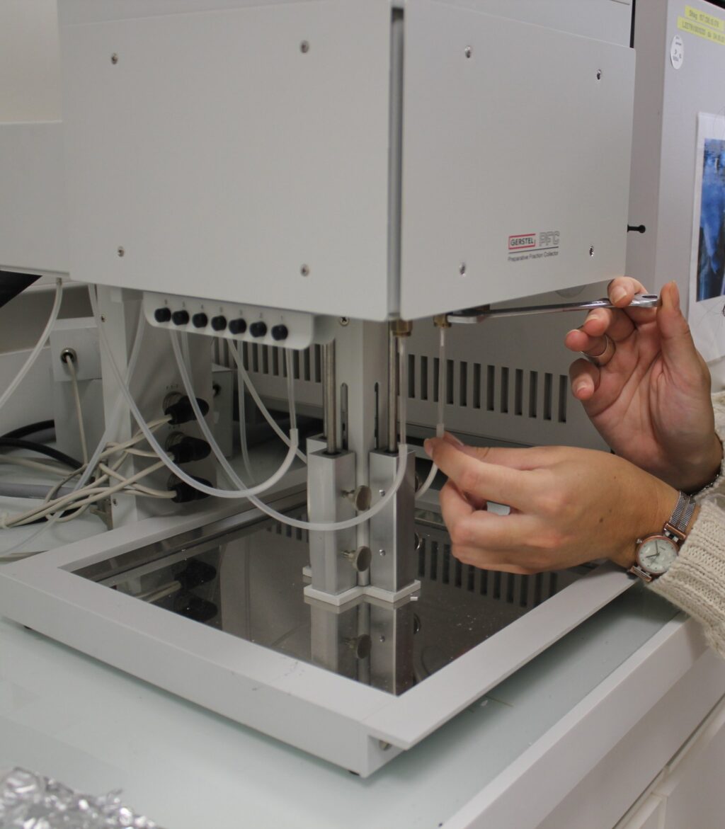 Molecular organic geochemistry studies are based on the identification of molecular signatures contained in archaeological or environmental samples. The molecules in our matrices are extracted using chemical protocols, then separated using chromatographic methods and identified using mass spectrometry.